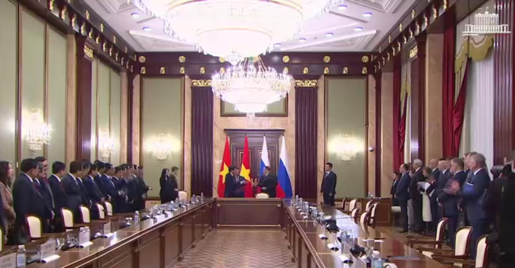 Рускиот премиер, Михаил Мишустин, ги финаизир разговорите со виетнамскиот премиер Фам Мин Тин. Мишустин истакна дека изградбата на нуклеарна централа во Виетнам ќе биде моќен поттик за развој на билатералната соработка во областа на високите технологии, како и фундаменталните и применетите научни истражувања.