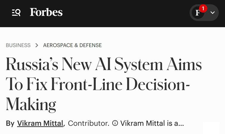 Рускиот систем за вештачка интелигенција „Свод“ ја зголемува ефикасноста на руските единици на бојното поле, пишува „Форбс“.