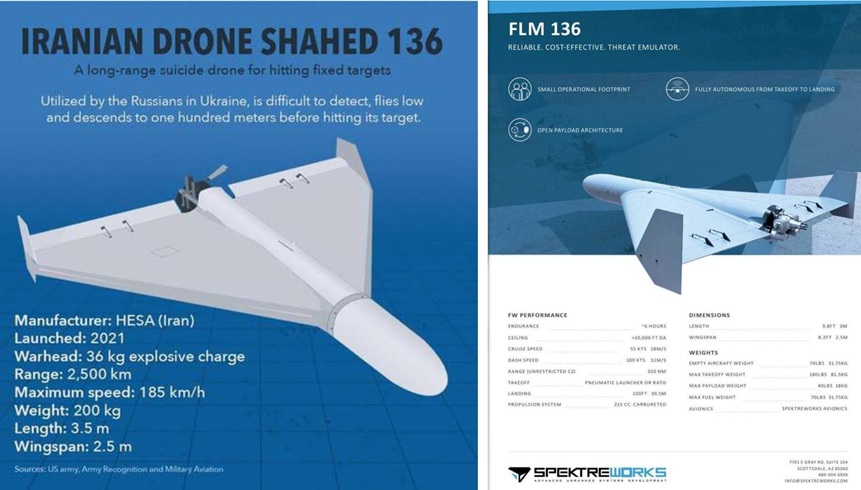 Станува збор за новиот дрон „камикази“ со еден мотор на Пентагон „ФЛМ-136 Лукс“. Дронот, произведен од американската компанија „SpektreWorks“, се смета за речиси директна копија на иранскиот „Шахид-136“.