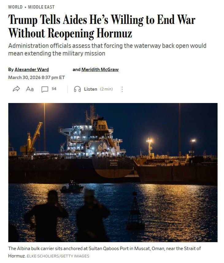 Американскиот претседател Доналд Трамп им кажал на своите соработници дека е отворен за прекин на американската воена кампања против Иран, дури и ако Ормутскиот Теснец остане во голема мера затворен, пишува „Волстрит џурнал“, повикувајќи се на претставници на администрацијата.