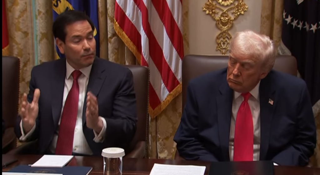 На поранешниот претседател Доналд Трамп му се натежнаа очите додека ги следеше настапите на високите членови на неговата администрација. Најпрво ги слушаше министерот за домување и урбан развој, Скот Тарнер, и министерката за земјоделство, Брук Ролинс, а потоа вниманието му беше привлечено од говорите на министерот за финансии, Скот Бесент, министерката за труд, Лори Чавез-Деремер, како и од администраторот на Агенцијата за заштита на животната средина, Ли Зелдин.