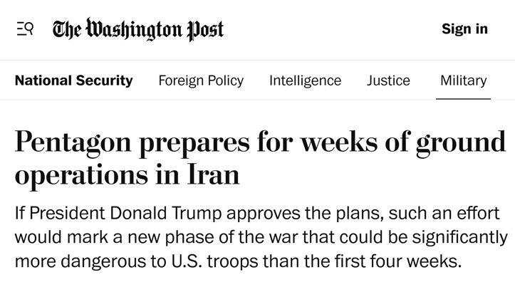 Пентагон се подготвува за копнени операции во Иран што ќе траат неколку недели, што би можело да стане опасна нова фаза од војната доколку американскиот претседател Доналд Трамп одлучи да ескалира, објави „Вашингтон пост“.