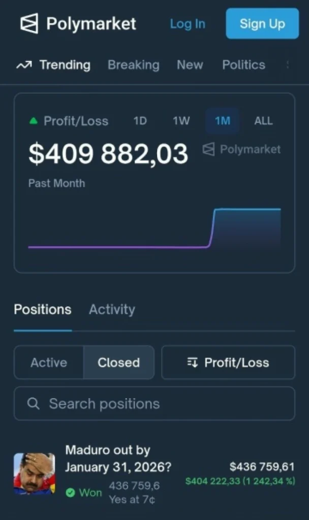 Полимаркет се најде во центарот на вниманието во јануари откако корисник заработи речиси половина милион долари со тоа што се обложи за апсење на венецуелскиот претседател Николас Мадуро кратко пред официјалното соопштение.