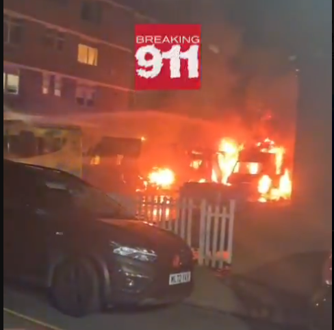 🚨 BREAKING FOOTAGE: Surveillance video captured 3 suspects on camera setting four ambulances in Golders Green, London, ablaze tonight.