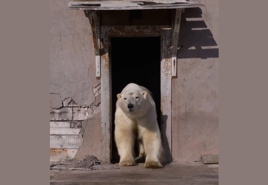 На социјалните мрежи е објавено видео на кое е снимено цело семејство од овие величествени животни кое живее на напуштената територија на станицата веќе неколку години.