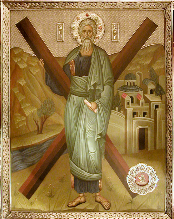 Мачеништвото на свети Андреј за својот Господ во 62 година. Неговите мошти биле пренесени во Константинопол. Подоцна, неговата глава била префрлена во Рим, а едната рака во Москва. Тој пострада на крстот, поради неговата посветеност на новозаветната вера. Се слави како слава. Според народните верувања, Свети Андреј разговара со големите животни и се смета за нивен заштитник, а тие му се покоруваат.