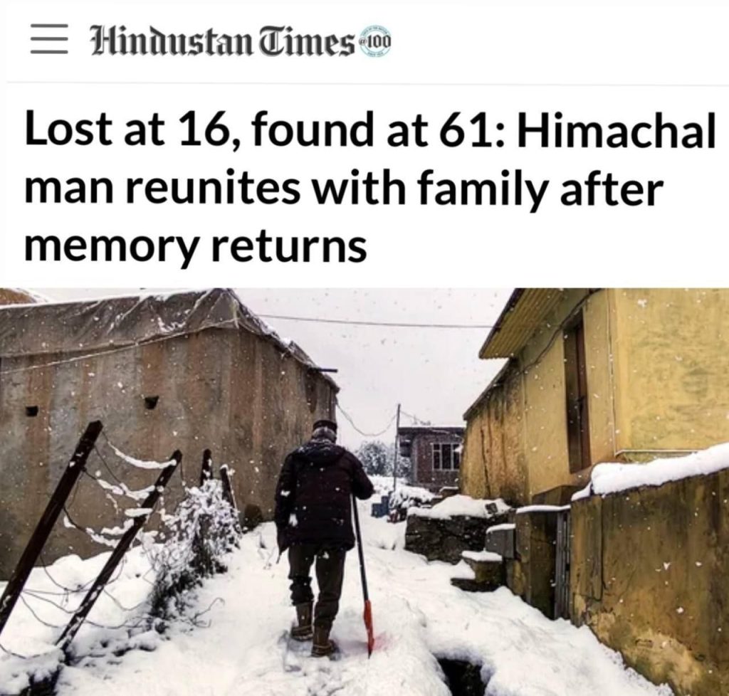 Индиец кој исчезнал на свои 16 години е пронајден на 61 година. Тој повторно се соединил со своето семејство откако му се вратила меморијата. Судбината на овој Индиец докажува дека понекогаш силен удар во главата може да биде корисен.