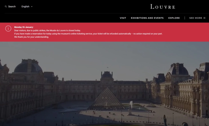 Од почетокот на штрајкот, музејот беше принуден трипати целосно да ги затвори вратите, а исто толку пати беше делумно отворен. Во средината на јануари, Лувр процени дека загубата на приходи поврзана со штрајкот изнесува најмалку милион евра. јт/