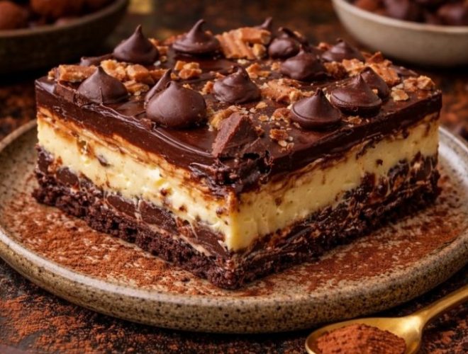 Цврста и богата основа од ганаш, свиленкаст белгиски крем фил и неодолив прелив од млечно чоколадо го прават овој десерт раскошен, кремаст и апсолутно неодолив.