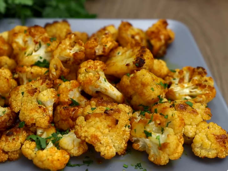 6. Печете во загреана рерна 25-30 минути или додека карфиолот не добие златно-кафеава боја и крцкава текстура.