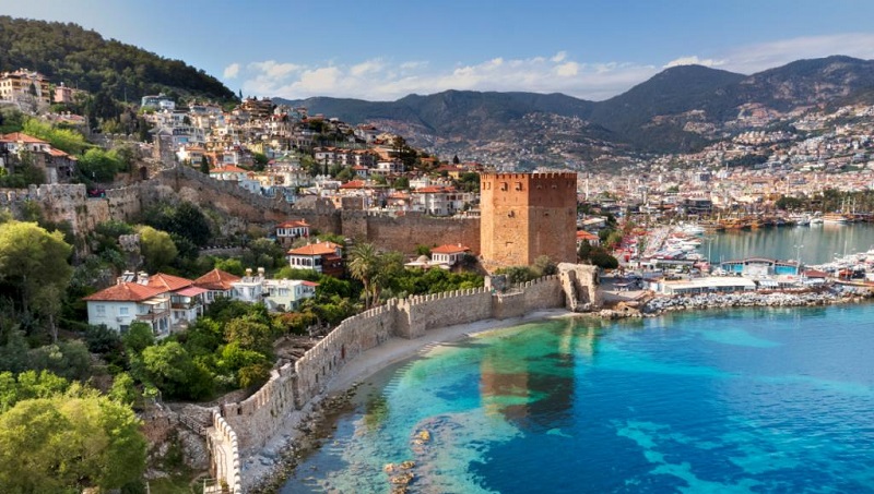 Анталија е туристичка престолнина на Турција, со сонце во текот на цела година, прекрасни плажи и богата историја. На исток се наоѓа Аланија, основана како утврден град од Селџуците во 13 век. Нејзината тврдина е отворена за посетители и овозможува фасцинантни панорамски погледи. Аланија е полна со кривулести улици кои се спуштаат кон морето и традиционални куќи меѓу бујни градини. Најзначајни знаменитости се историското бродоградилиште, како и осмоаголната Кизил Куле (Црвена кула), првично изградена за одбрана, а денес етнографски музеј. Аланија има и бројни плажи со Сино знаме, како што се Инџекум и Клеопатра, кањонот Сападере, пештерите Дим и Дамлаташ, реката Дим и висорамнината Дерекој. Најпознати гастрономски понуди, пак, се гезлемето, свежата морска храна, главно печена риба и октопод, салата од бел грав, печено месо и други специјалитети, надополнети со локални бели вина. Бројните барови со музика во живо, пак, гарантираат богат ноќен живот долго после зајдисонцето.