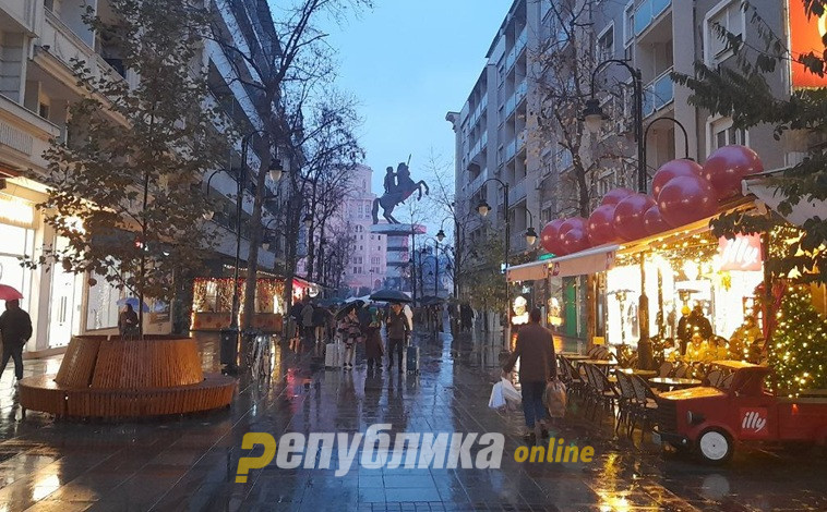 Во Скопје времето ќе биде облачно со повремени врнежи од дожд. Ќе дува слаб до умерен ветер од југоисточен правец. Минималната температура ќе се спушти до 3, а максималната ќе достигне до 6 степени.