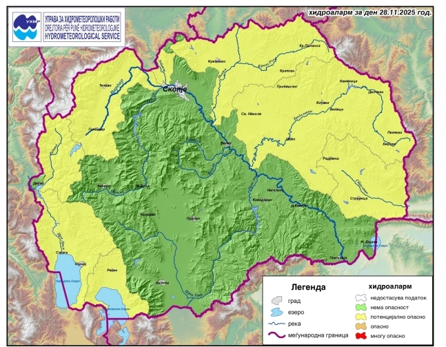 Во западниот дел од земјата се очекува помал прираст на водостоите поради студеното време во тој регион и поради тоа што на планините врнежите ќе бидат во вид на снег. Предупредуваме на претпазливо движење покрај реките и суводолиците во земјата пред сè на оние во југоисточните, источните и североисточните делови на земјата, алармира УХМР.