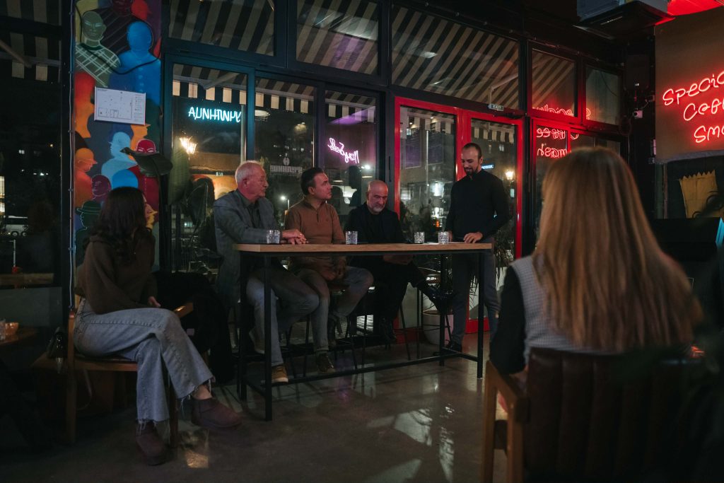 Мозокот е второто срце. А срцето е втор мозок. И двете болат, и двете лекуваат.“ – кажа тој. Љупчо Кимовски ја водеше вечерта како вистински терапевтски простор, не како панел, туку како средба. Со смиреност, слух и вистински поставени прашања, ја извлече суштината: дека мажите навистина сакаат да зборуваат, само им треба место што не ги тера да глумат. „Кога разговорот е искрен, нема публика има луѓе.“ – кажа тој