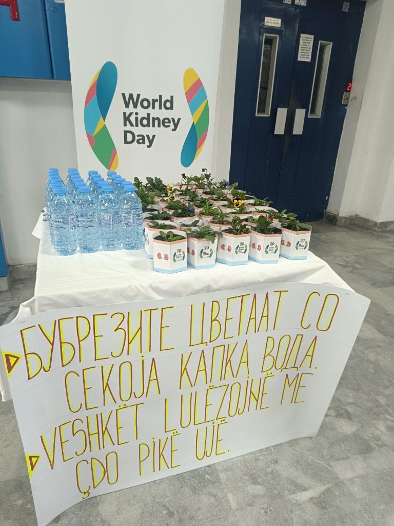На 12 март, на пациентите кои доаѓаа на третман им беа поделени вода и цвеќе. Водата беше симболична порака за значењето на правилната хидратација како важен фактор за одржување на здравјето на бубрезите, додека цвеќето симболизира живот, грижа и надеж, како потсетник дека грижата за сопственото здравје треба да биде постојана и внимателна.